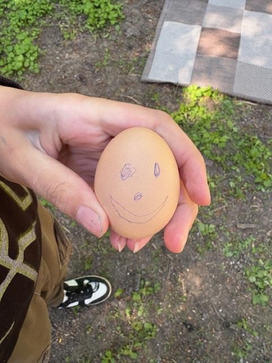 Das Highlight des Unterrichtsganges war der von der Mutter als Überraschung vorbereitete Snack, den die Schülerinnen und Schüler mit großer Begeisterung annahmen: für jedes Kind gab es ein gekochtes Ei aus "eigener" Produktion sowie Gurken- und Brotsticks. Vielen Dank!