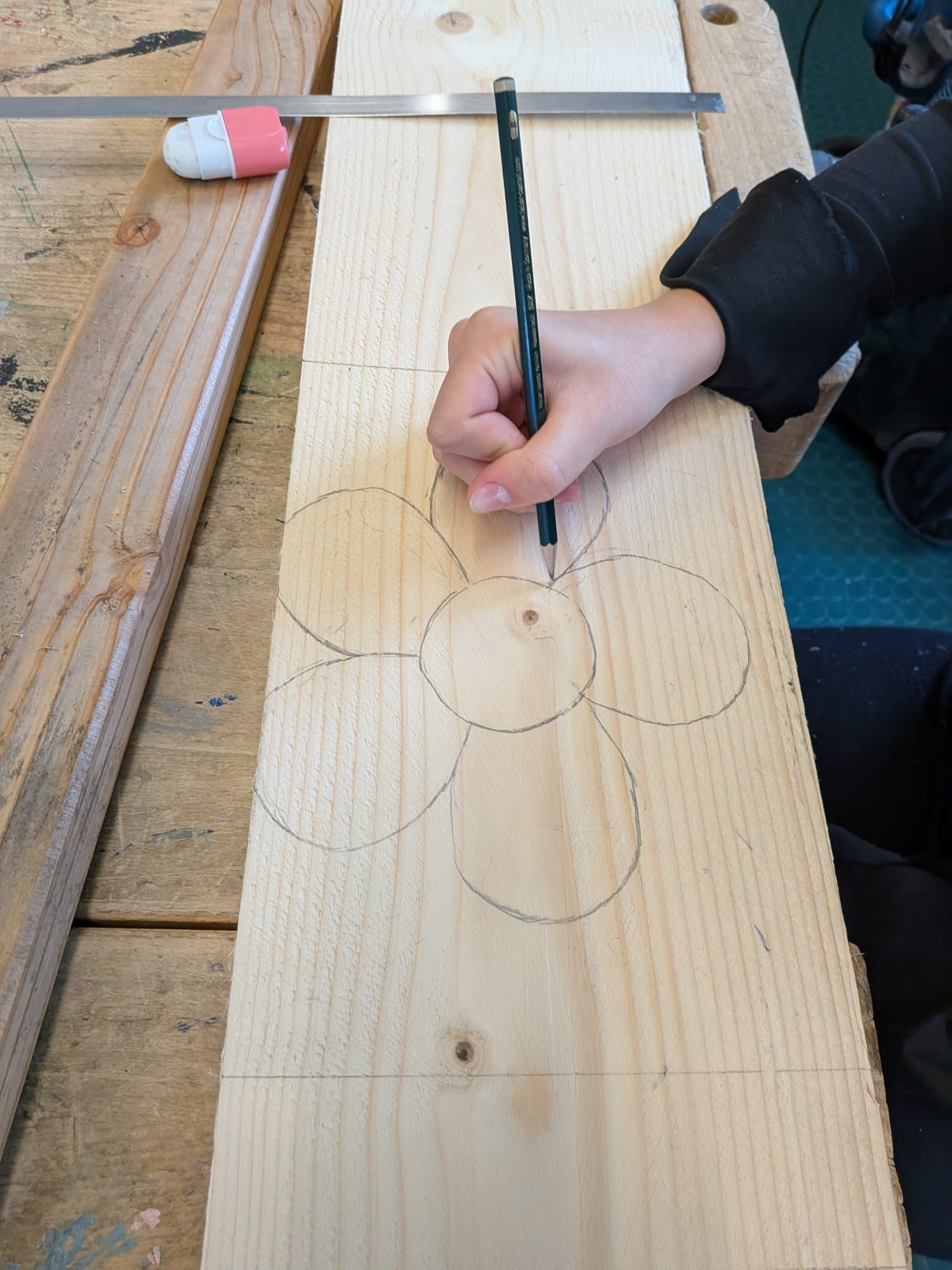 Klasse 9RB arbeitete in der Holzwerkstatt an einem gemeinschaftlichen Projekt, bei dem handwerkliches Geschick und Zusammenarbeit im Mittelpunkt standen.