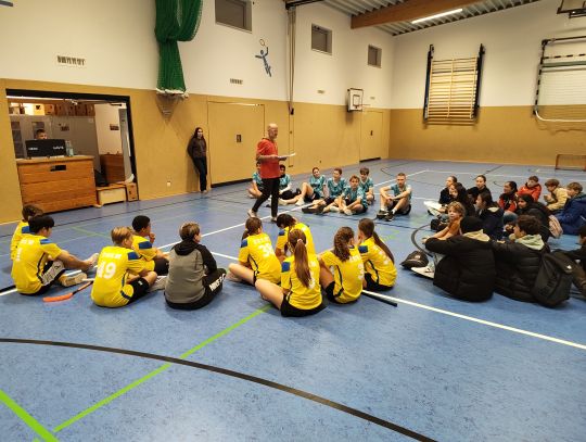 Am Donnerstag, dem 20.11.25 fand der Kreisentscheid Floorball in der Kategorie U16 statt. Dabei trafen sich die 4 Mannschaften zur Austragung und Qualifikation zum Landesentscheid in der Assenheimer Sporthalle. Das Team der GSS bestand dabei aus Spielerinnen der Klasse 9RB und Spielern der 9RA.