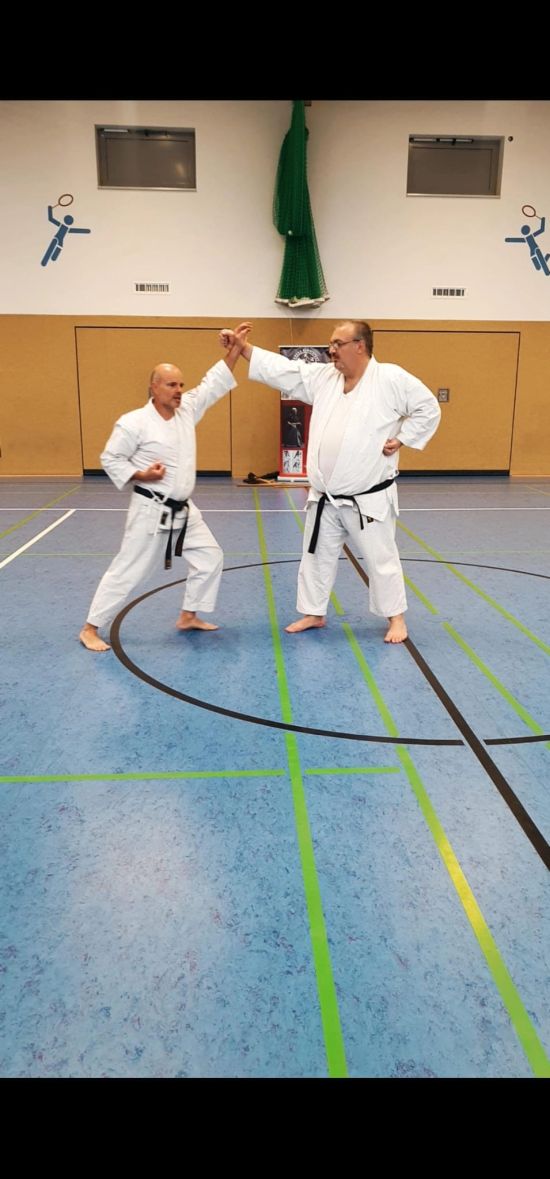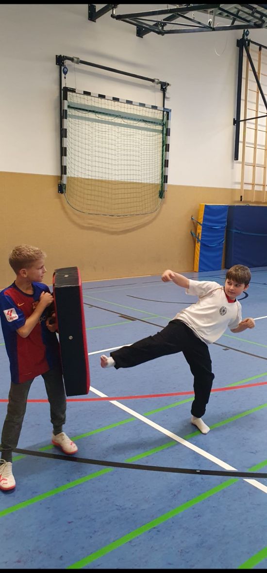 Trainer Michael Cloth und ein weiteres Vereinsmitglied vom Kobudo Kampfsport Friedberg Wetterau e.V. boten den Schülern beider Sportklassen an der Geschwister-Scholl-Schule in Assenheim eine besondere Einführung in Karate und Kobudo. Während jeweils einer Doppelstunde Mitte Dezember 2025 erhielten die Schülerinnen und Schüler eine Einführung in kontaktlose Karate-Techniken und lernten einige traditionelle Kobudo-Waffen kennen.