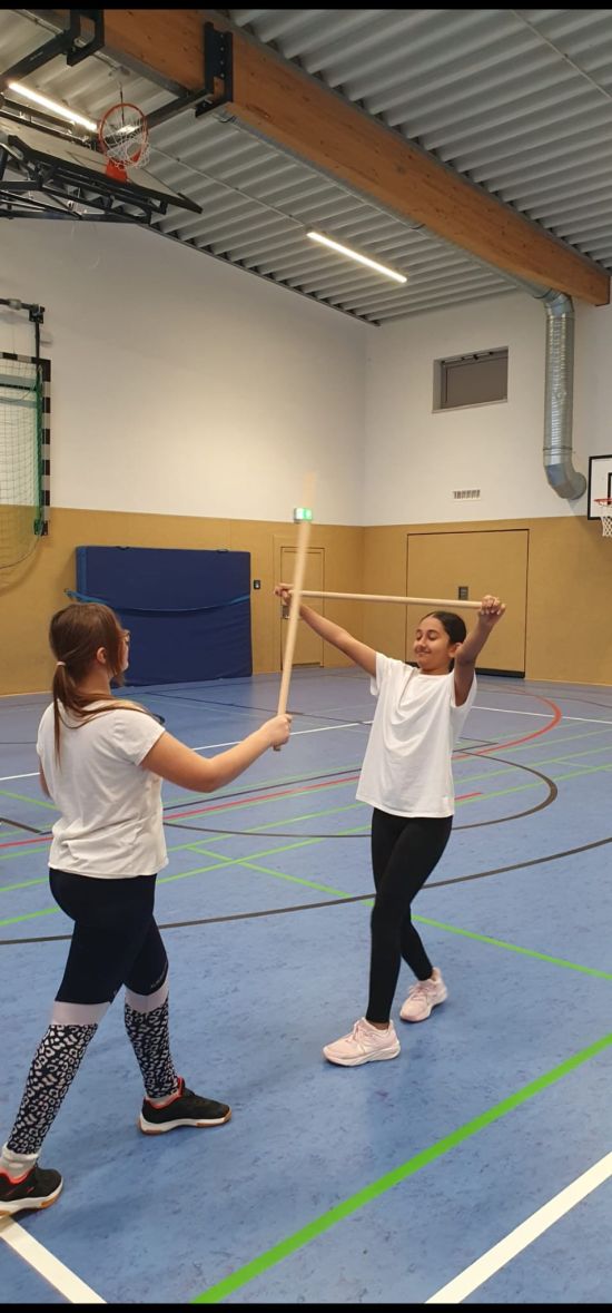 Das Training kombinierte verschiedene Aspekte wie Fitness, Beweglichkeit, Muskelaufbau und Reaktionsfähigkeit. Für viele Schülerinnen und Schüler war es die erste Erfahrung mit dem Langstock Bo, der eine der zentralen Bedeutung des Kobudos darstellt.